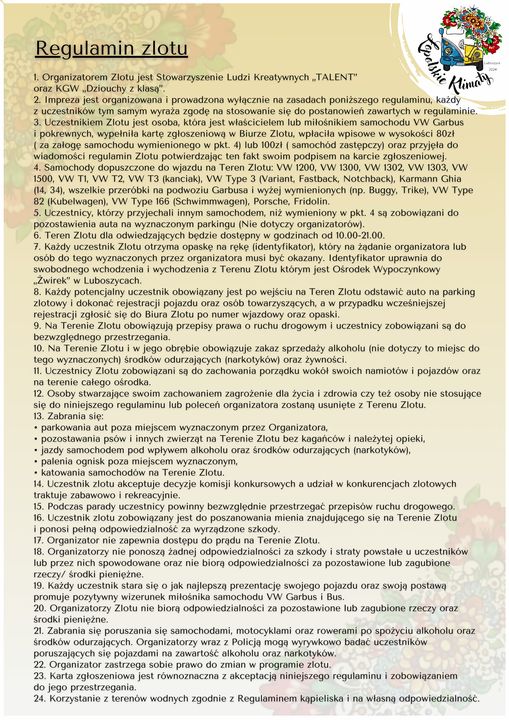 II Zlot VW Garbusa & Busa ŁOpolskie Klimaty 28 – 30.06.2024 Luboszyce  koło Opola. poprawiony plan